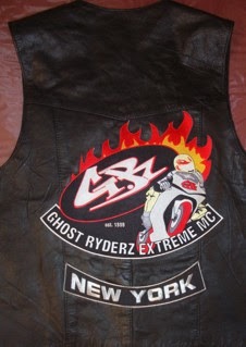 The first set of colors of the Ghost Ryderz Extreme MC is stitched onto the Founder/President’s vest. GREMC is incorporated in the state of New York in May of 2000 becomes a charter of the American Motorcycle Association